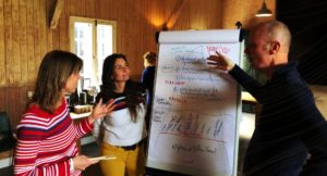 Deep Democracy lijkt heel eenvoudig. Je moet even doorzetten om het te pakken te krijgen. Het niet raar vinden dat mensen zeggen ‘huh wat ga jij doen?’. Je moet veel oefenen. Goed op je taal letten. Het moeilijkste vind ik om echt in mijn neutraliteit te blijven en een goede samenvatting te geven na de check-in. En om die goede samenvatting te geven moet je weer in je neutraliteit blijven…..”.